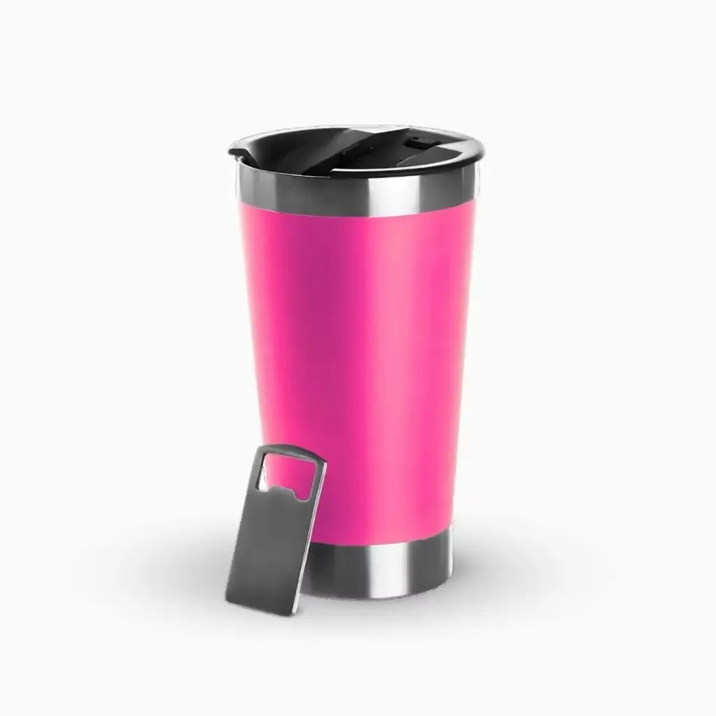 Foi feito especialmente para você aproveitar a sua bebida em todos os momentos. Sua estrutura de parede dupla com isolamento a vácuo, permite que a bebida fique gelada ou quente por mais tempo em ótimo estado de conservação. Devido a tecnologia envolvida, o copo não fica molhado externamente, evitando que ele escorregue. Além da tampa não deixar derramar o liquido e proteger da sujeira, conta com um belíssimo abridor de garrafa. Seja na praia, na montanha ou naquela reunião com os amigos, esse copo não te deixa na mão!