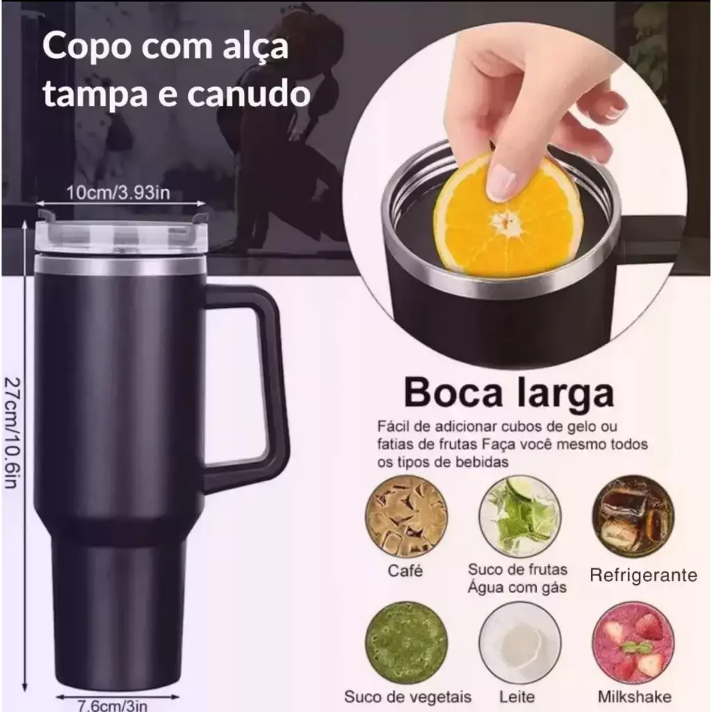 Isolamento a vácuo: Feito em aço inoxidável e com tecnologia de bloqueio a vácuo, mantém o calor no inverno e refresca no verão.